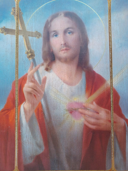 CUADRO DE MADERA DEL SAGRADO CORAZON DE JESÚS (10X8)